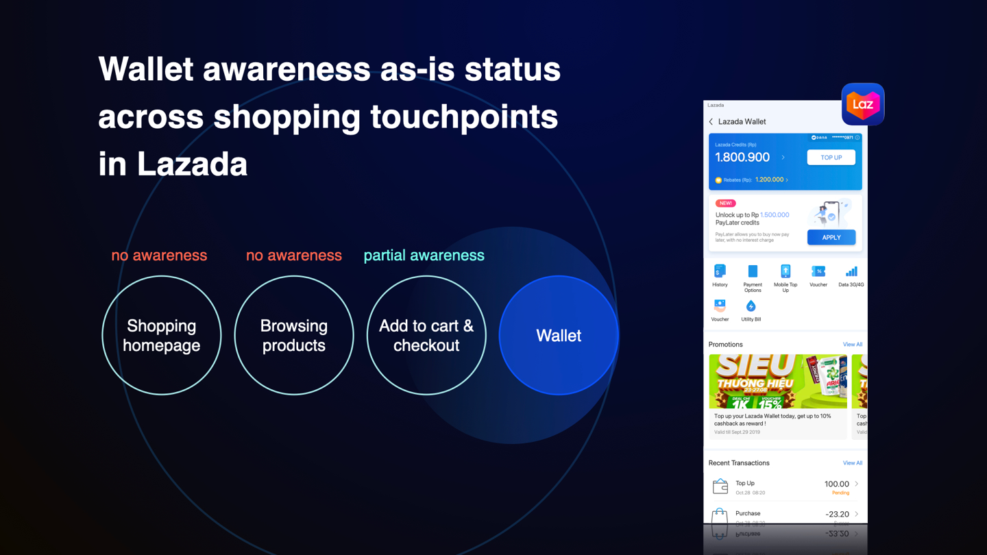 In an end to end product check with other roles, though multiple iterations have been implemented to optimize Lazada wallet itself, we found that users just don't have enough awareness of it, not to mention all the values that come with it.
